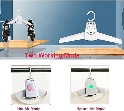 Two Working Modes with Ionization: Features two modes—air and natural aerial. It produces negative ions during operation to eliminate bad odors from clothes and shoes, ensuring they smell fresh after drying.